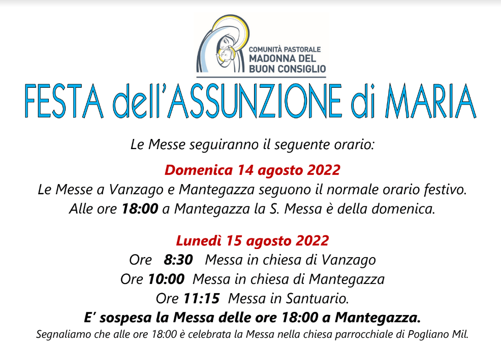 Festa dell’Assunzione di Maria – 15 agosto 2022 Immagine Posted on 5 agosto 2022 by admin Condividi: Condividi su X (Si apre in una nuova finestra) X Condividi su Facebook (Si apre in una nuova finestra) Facebook Mi piace Caricamento...