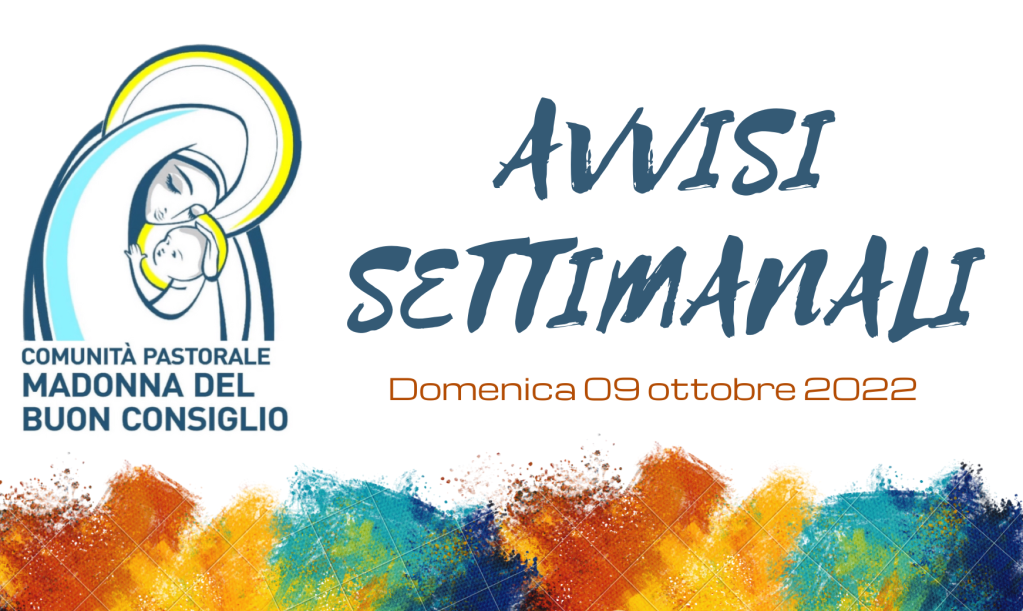 Avvisi: 09 ottobre 2022 Posted on 10 ottobre 2022 by admin Rispondi Cliccando sull’immagine sottostante è possibile aprire il foglio degli avvisi settimanali, valido da domenica 09/10/2022 a domenica 16/10/2022.