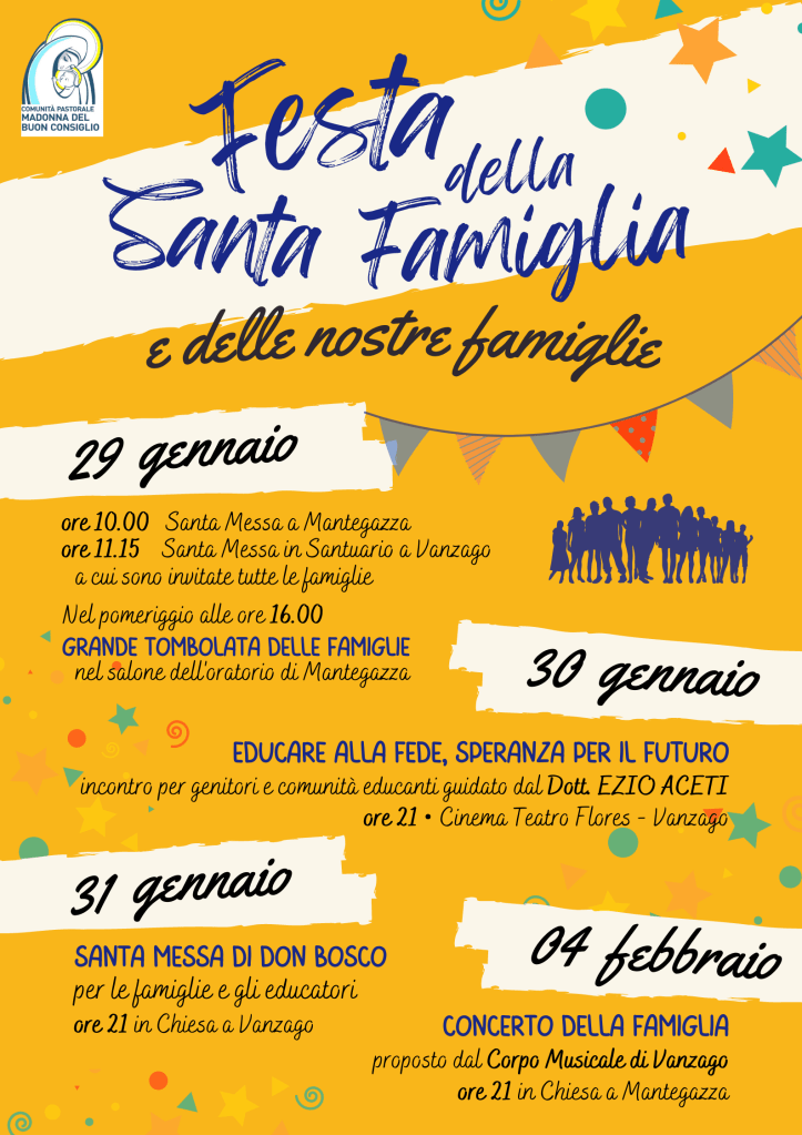 Festa della Santa Famiglia Posted on 23 gennaio 2023 by admin Scopri il calendario con tutti gli appuntamenti previsti in occasione della Festa della Santa Famiglia! Condividi: Condividi su X (Si apre in una nuova finestra) X Condividi su Facebook (Si apre in una nuova finestra) Facebook Mi piace Caricamento...