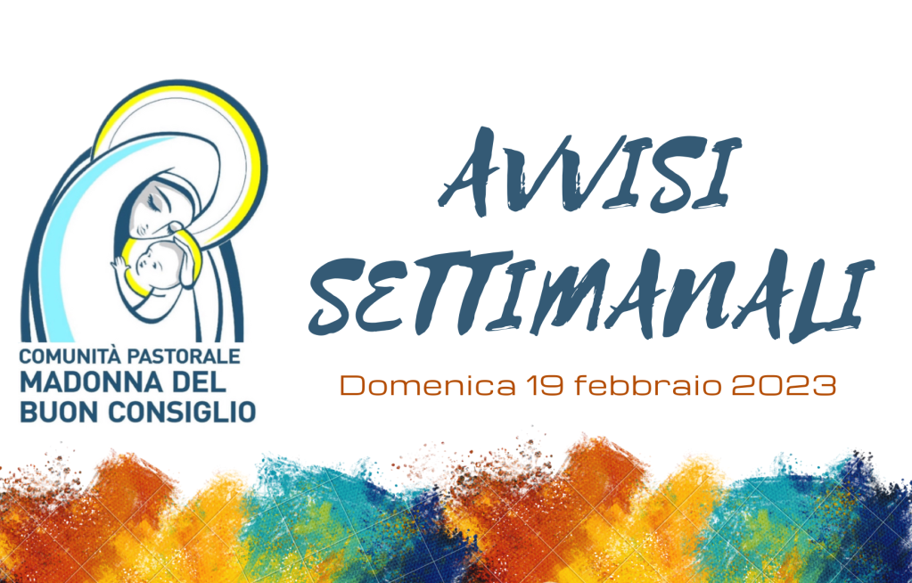 Avvisi: 19 febbraio 2023 Posted on 20 febbraio 2023 by admin Cliccando sull’immagine sottostante è possibile aprire il foglio degli avvisi settimanali, valido da domenica 19/02/2023 a domenica 26/02/2023. Condividi: Condividi su X (Si apre in una nuova finestra) X Condividi su Facebook (Si apre in una nuova finestra) Facebook Mi piace Caricamento...