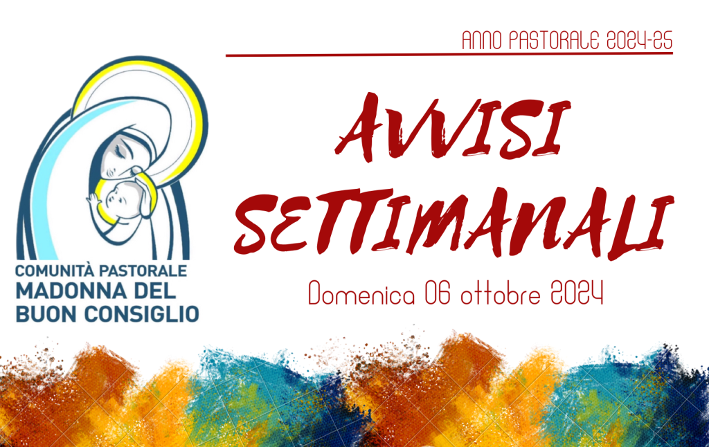 Avvisi: 06 ottobre 2024 Posted on 5 ottobre 2024 by admin Consulta il foglio degli avvisi settimanali valido da domenica 06/10 a domenica 13/10 Condividi: Condividi su X (Si apre in una nuova finestra) X Condividi su Facebook (Si apre in una nuova finestra) Facebook Mi piace Caricamento...