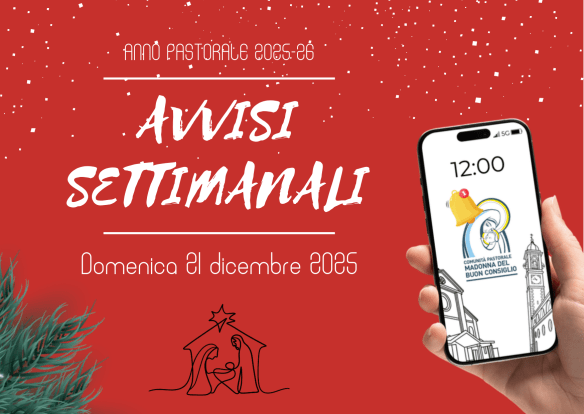 Avvisi: 21 dicembre 2025 Posted on 21 dicembre 2025 by admin Questo foglio avvisi avrà durata quindicinale; ci rivediamo domenica 04 gennaio. Buon Natale a voi tutti! Condividi: Condividi su X (Si apre in una nuova finestra) X Condividi su Facebook (Si apre in una nuova finestra) Facebook Mi piace Caricamento...